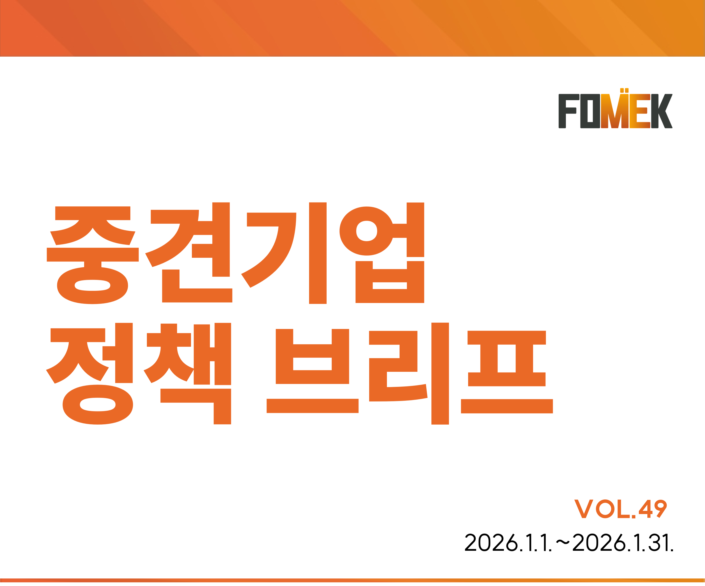 주요 정책 이슈 2026년 1분기 중견기업 경기전망지수한중정상회담 결과에 대한 중견기업계 의견2026년 경제성장전략에 대한 중견기업계 의견
