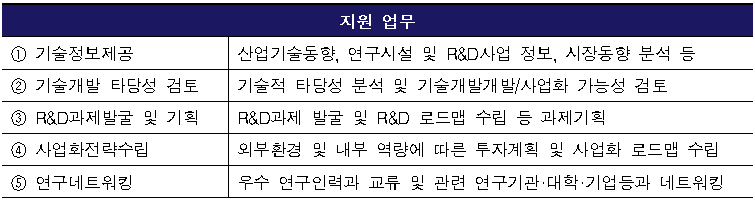 고난도 혁신기술 개발, 신사업 진출에 어려움을 겪는 중견기업 또는 중견후보기업을 해당 분야 공공연구기관과 매칭해 공동 기획 및 협력네트워크 활동을 지원합니다.