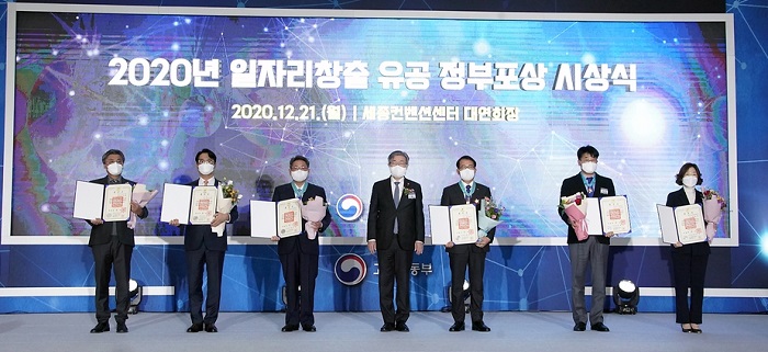 개인 부문에서는 오영주 '삼화콘덴서공업' 회장이 2018년 이후 현재까지 313명을 신규 채용하고, 육아휴직 장려 등 일ㆍ가정 양립 문화 확산에 기여한 공로로 은탑산업훈장을 수상했습니다. 정연백 '에스엘' 팀장은 국무총리표창, 김진욱 '제니엘' 인천지점센터장은 고용노동부장관표창을 받았습니다.