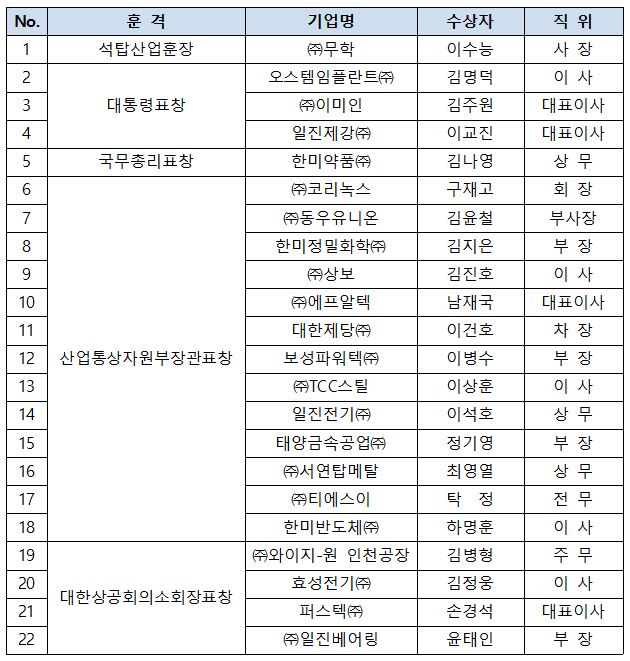 <'제48회 상공의 날' 정부포상 수상 회원사>