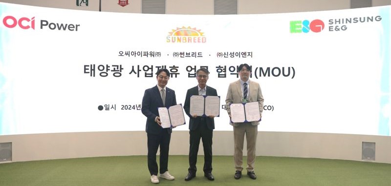 '신성이엔지'는 태양광 공동 개발과 발전소 운영, 고출력·친환경 태양광모듈 공급 등을 담당합니다. 태양광인버터 및 에너지저장장치(ESS) 업체인 OCI파워는 지붕형 태양광을 비롯해 융복합 및 노지 태양광 공동 개발과 설계·조달·시공(EPC)을, 썬브리드는 사업 인허가와 시공, 발전소 유지·관리하는 역할을 합니다.