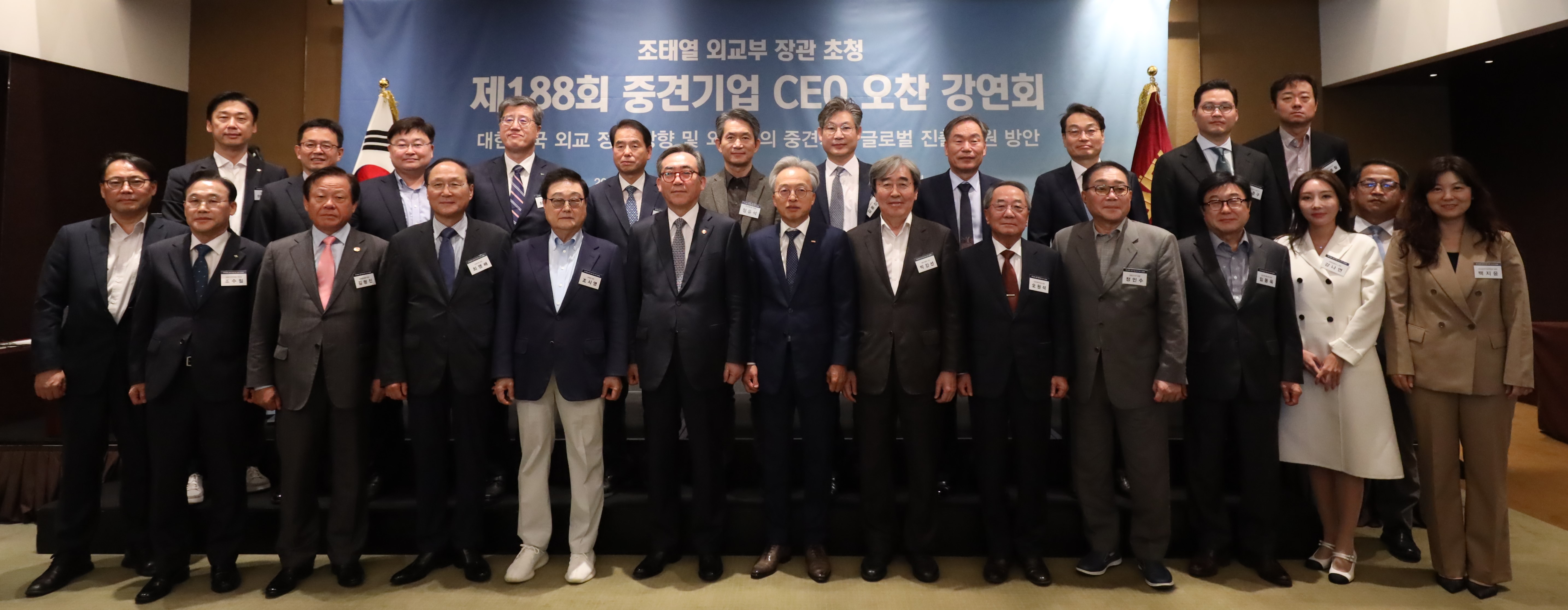 조태열 외교부 장관은 '대한민국 외교 정책 방향 및 외교부의 중견기업 글로벌 진출 지원 방안' 주제 강연을 통해 글로벌 복합위기와 안보-경제 융복합 시대에 대응하는 외교부의 경제 외교 활동을 소개하면서, "우리 정부는 지정학적 운명에 순응하지 않고 능동적으로 국익을 수호하면서 국제사회의 자유, 평화, 번영에 적극적으로 기여하기 위해 '글로벌 중추 국가' 비전 실현에 최선을 다하고 있다"라고 강조했습니다.