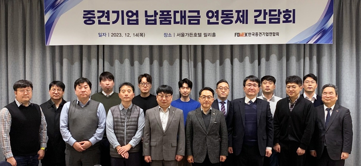 한국중견기업연합회가 14일 서울가든호텔에서 '중견기업 납품대금 연동제 간담회'를 개최하고, 납품대금 연동제 시행에 따른 중견기업계 애로 해소 방안 모색에 나섰습니다.