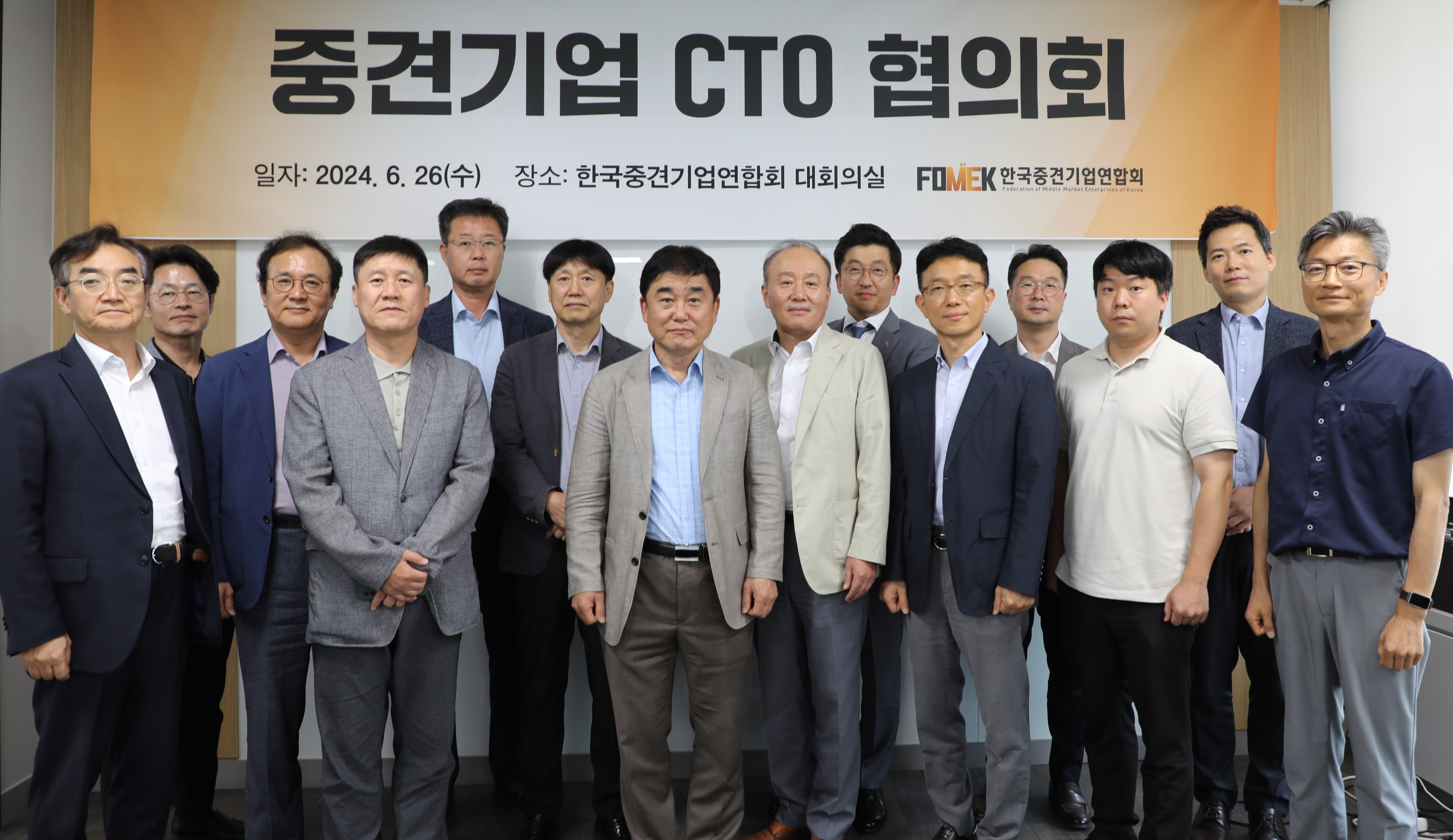 '협의회'에는 이호준 중견련 상근부회장, 최재혁 한국산업기술진흥원 단장, 김진용 한국산업기술시험원 센터장과 태경그룹, 미래나노텍, 코넥, 코리아에프티 등 중견기업 최고기술경영자 15명이 참석했습니다.