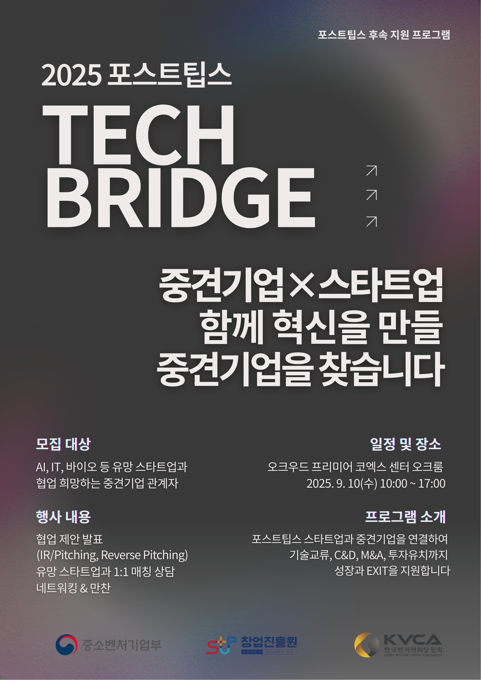 - (지원대상) 포스트팁스 수행기업과 협업을 희망하는 중견기업