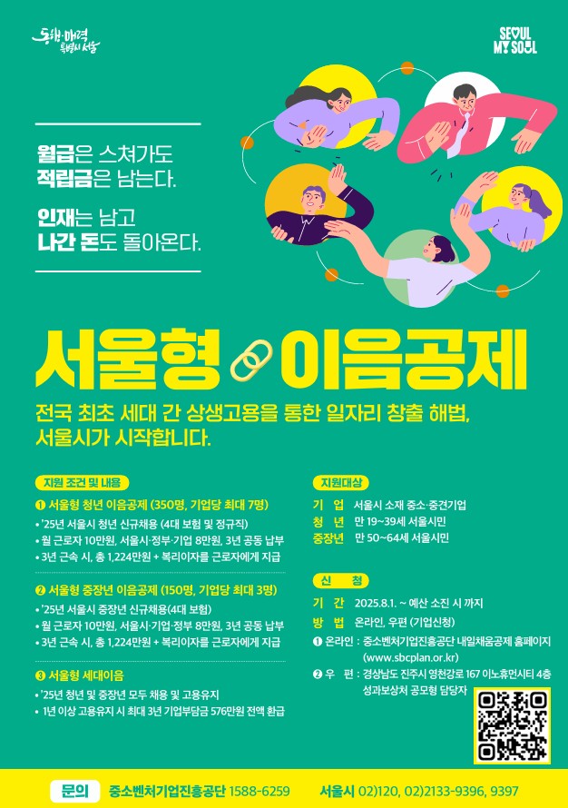 서울시는 서울소재 중소·중견기업에 2025년 신규 채용된 청년 및 중장년 근로자의 목돈 마련과 장기 재직을 유도하고,