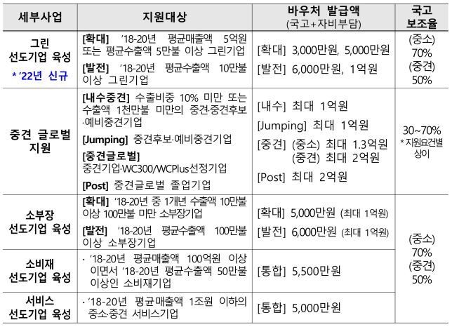 - 대 상: 세부 사업별 지원 요건 충족 중견·중소기업