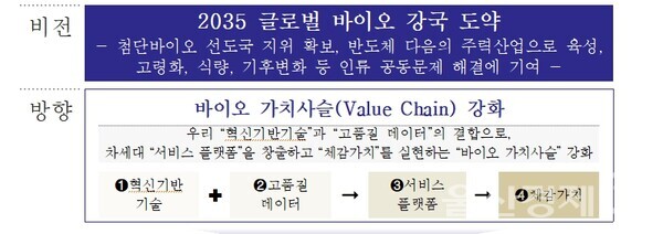 ➊디지털바이오 육성, ➋소재산업의 바이오기반 전환, ➌국민 삶의 질과 건강 제고, ➍기후변화 등 인류 공동 현안 대응을 주요 추진과제로 설정했습니다.