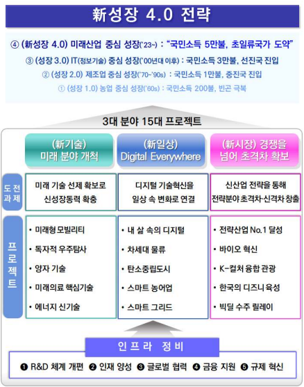 정부는 12.21일 대통령 주재 '제12차 비상경제민생회의' 겸 '제1차 국민경제자문회의'를 개최하여 「新성장 4.0 전략 추진계획」 을 발표하였습니다.