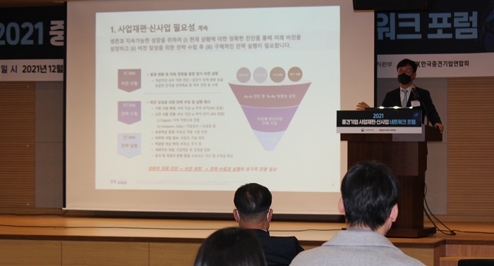 한국중견기업연합회가 12월 21일 상장회사회관에서 '2021년 중견기업 사업재편·신사업 네트워크 포럼'을 개최했습니다.