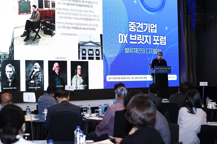 중견련은 14일 글래드여의도에서 '2022년 제1회 중견기업 디지털 전환 브릿지 포럼'을 개최, AI·VR 등 첨단 기술을 활용한 이업종 간 디지털 협업 전략 등 B2B 제조 중견기업의 경영 효율을 높일 디지털 역량 고도화 방안에 관해 논의했습니다.