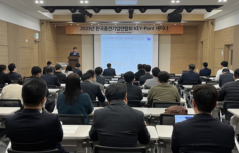 2021년 3월 출범한 '키포인트 세미나'는 법무, 회계, 금융, R&D 등 다양한 경제·산업 현안에 대한 시의성 있는 정보와 대응 전략을 제시하는 중견기업 특화 강연 프로그램입니다. 현재까지 총 열여섯 차례의 세미나가 개최됐습니다.