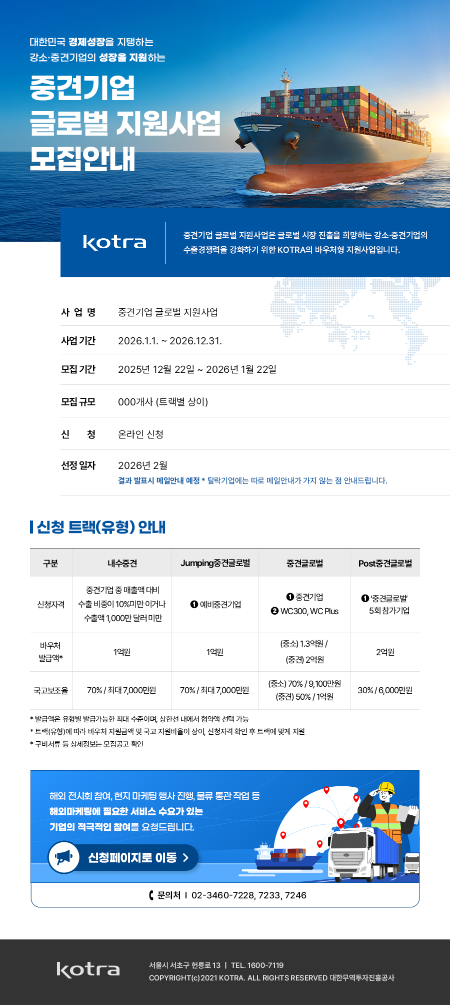 2026년 중견기업 글로벌 지원사업 모집을 실시하오니, 해외 진출에 관심있는 기업의 많은 참여 부탁드립니다.