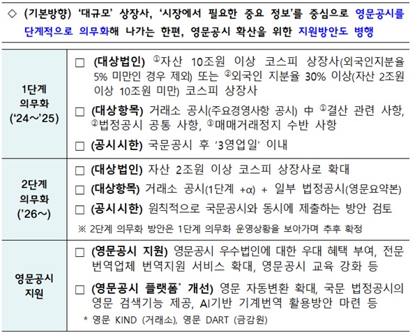 <영문공시 단계적 확대 방안 주요 내용>