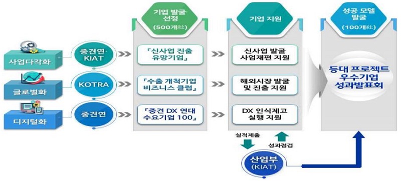 지난해 11월 정부가 내놓은 '혁신형 강소·중견기업 성장 전략'의 후속 조치로 2024년까지 기업 혁신의 모범 사례로서 100대 등대 기업을 중심으로 중견기업 6,000개를 달성한다는 목표를 설정했습니다. 신사업, 신시장, 신시스템 등 3대 추진 방향 아래 열네 개 실행 과제를 중점 추진합니다.