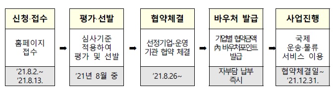 - 내 용: 수출 중견·중소기업 물류 전용 바우처 발급·지원