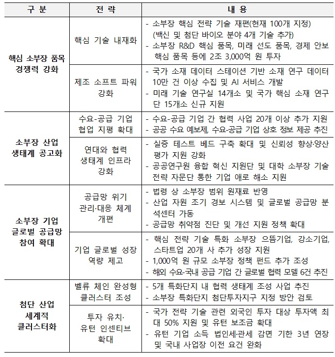 산업통상자원부가 3일 '제9차 소재·부품·장비 경쟁력 강화 위원회'에서 '2022년 소재·부품·장비 경쟁력 강화 시행 계획'을 심의·의결했습니다. 소재·부품·장비 부문 R&D에 약 2조 3,000억 원 규모의 예산을 투입하는 내용이 골자입니다.