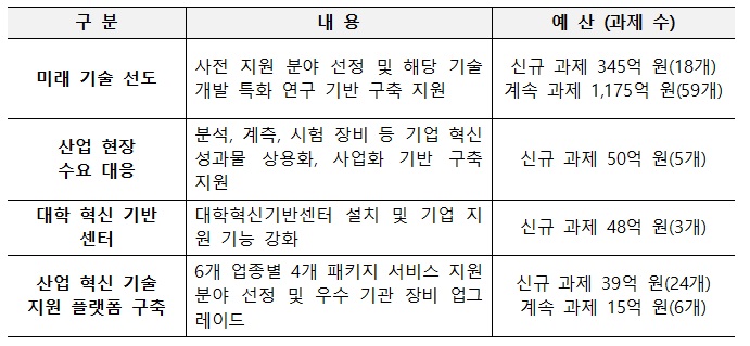 중견·중소기업이 직접 조성하기 어려운 R&D 인프라를 대학 및 공공기관에 구축하고, 기업의 실증, 사업화 등 기술 혁신 활동을 지원하기 위해 마련됐습니다.