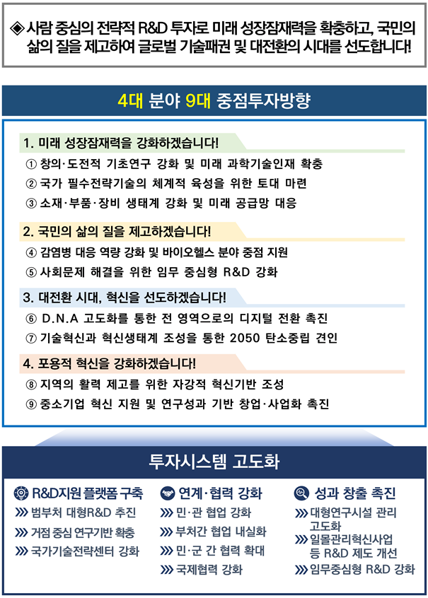 과학기술정보통신부가 '2023년 국가 R&D 투자 방향 및 기준'을 8일 발표했습니다.